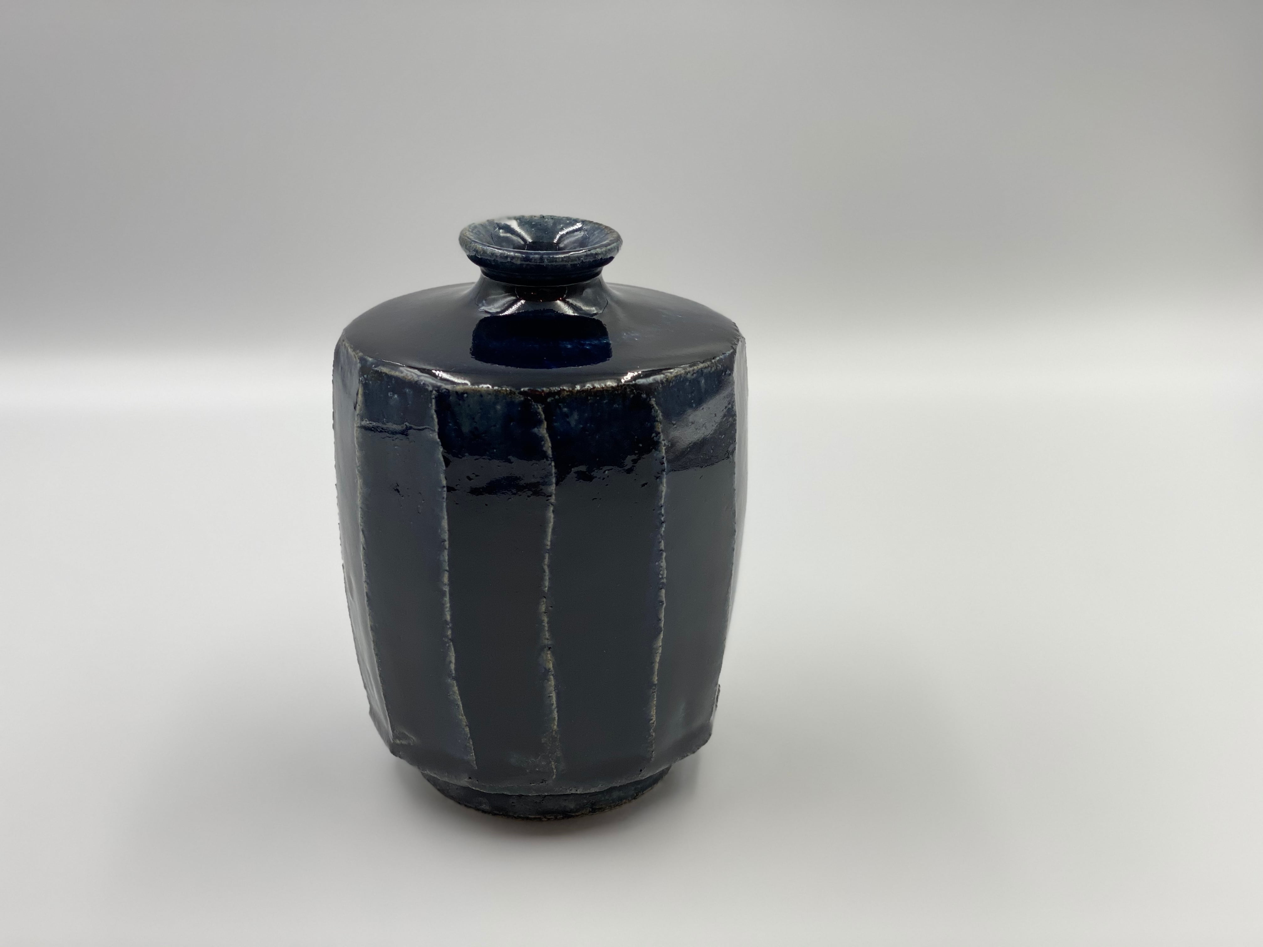 益子の陶芸家 阿久津忠男さんの瑠璃釉の一輪挿しです